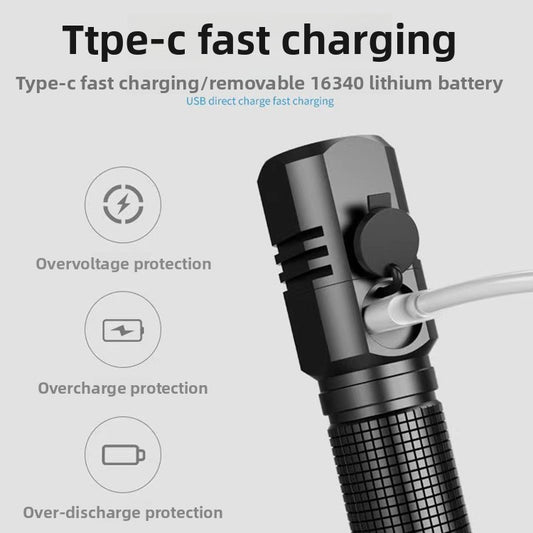 Portable 50W Rechargeable Flashlight with Type-C for Outdoor