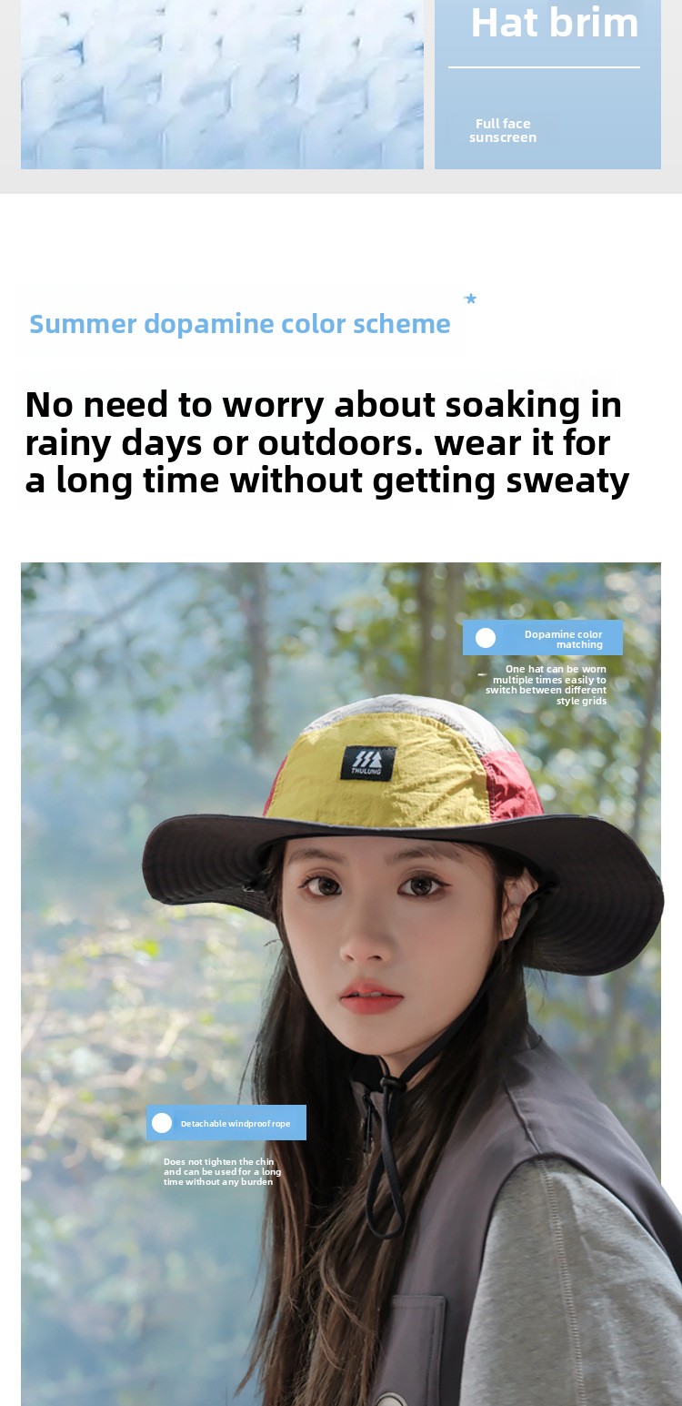Sun Protection: Large brim design provides excellent UV protection for outdoor activities.