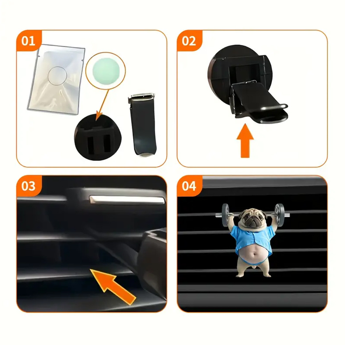 Decorative Design: Features a weightlifting puppy acrylic ornament, adding a playful touch to car interiors.