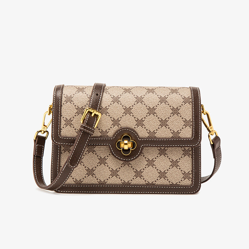 Features trendy floral print, refined sewing thread accents, and a lock closure for a sleek, fashionable finish.