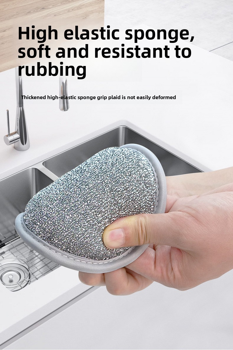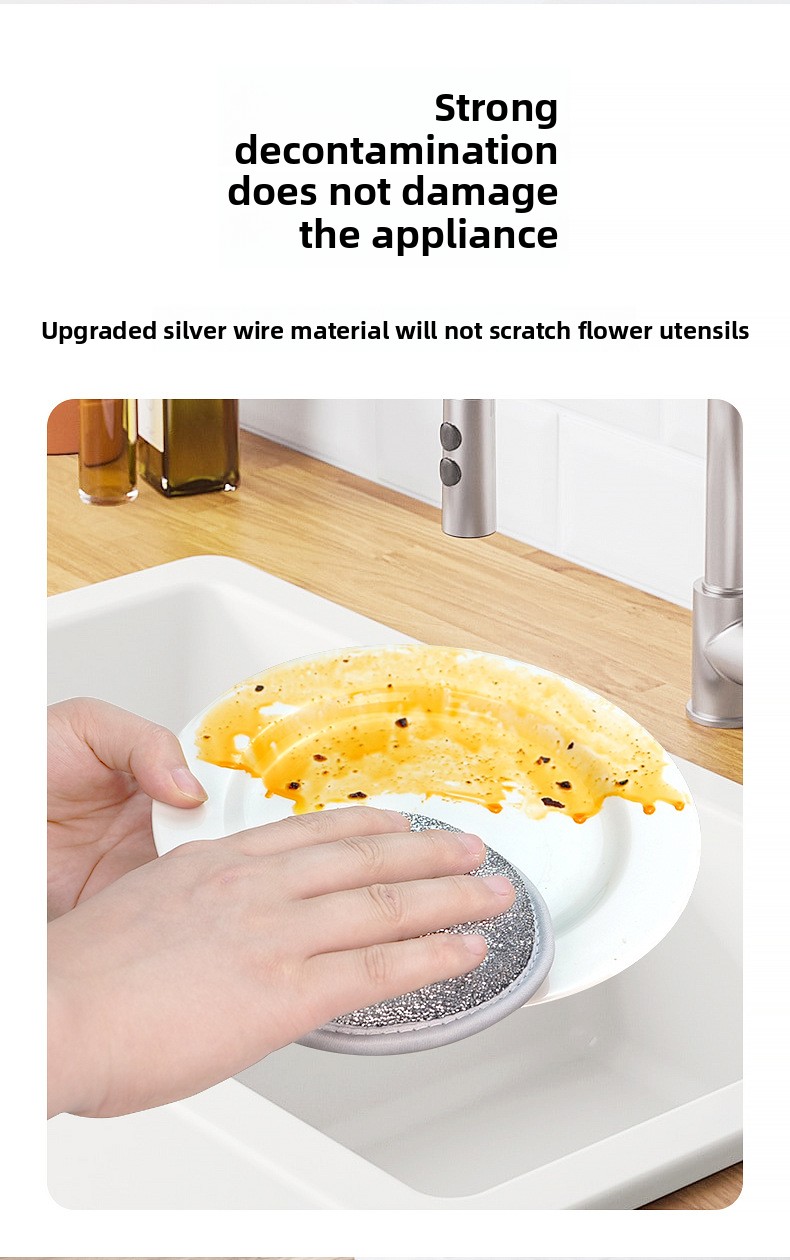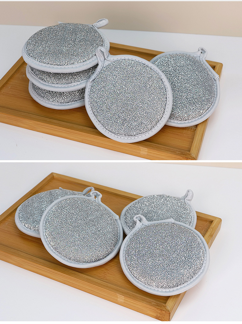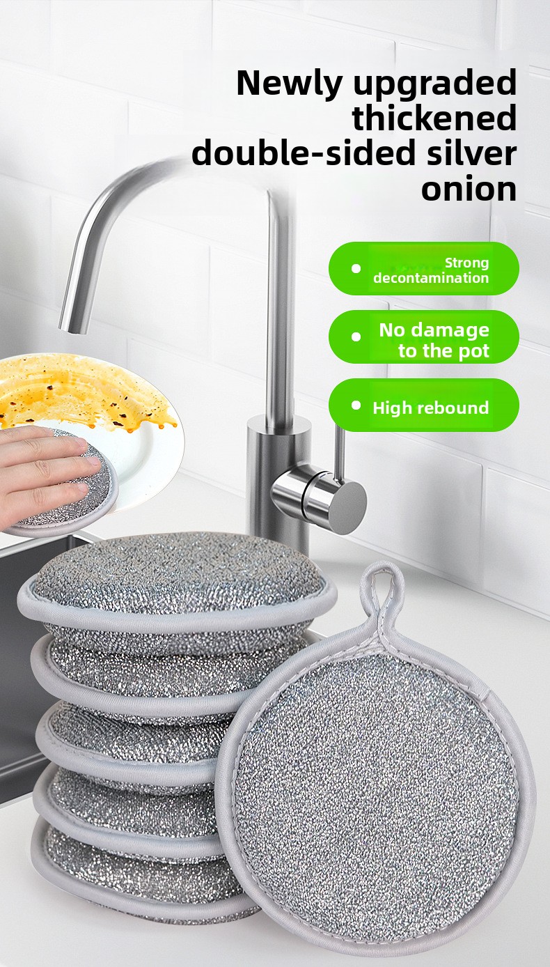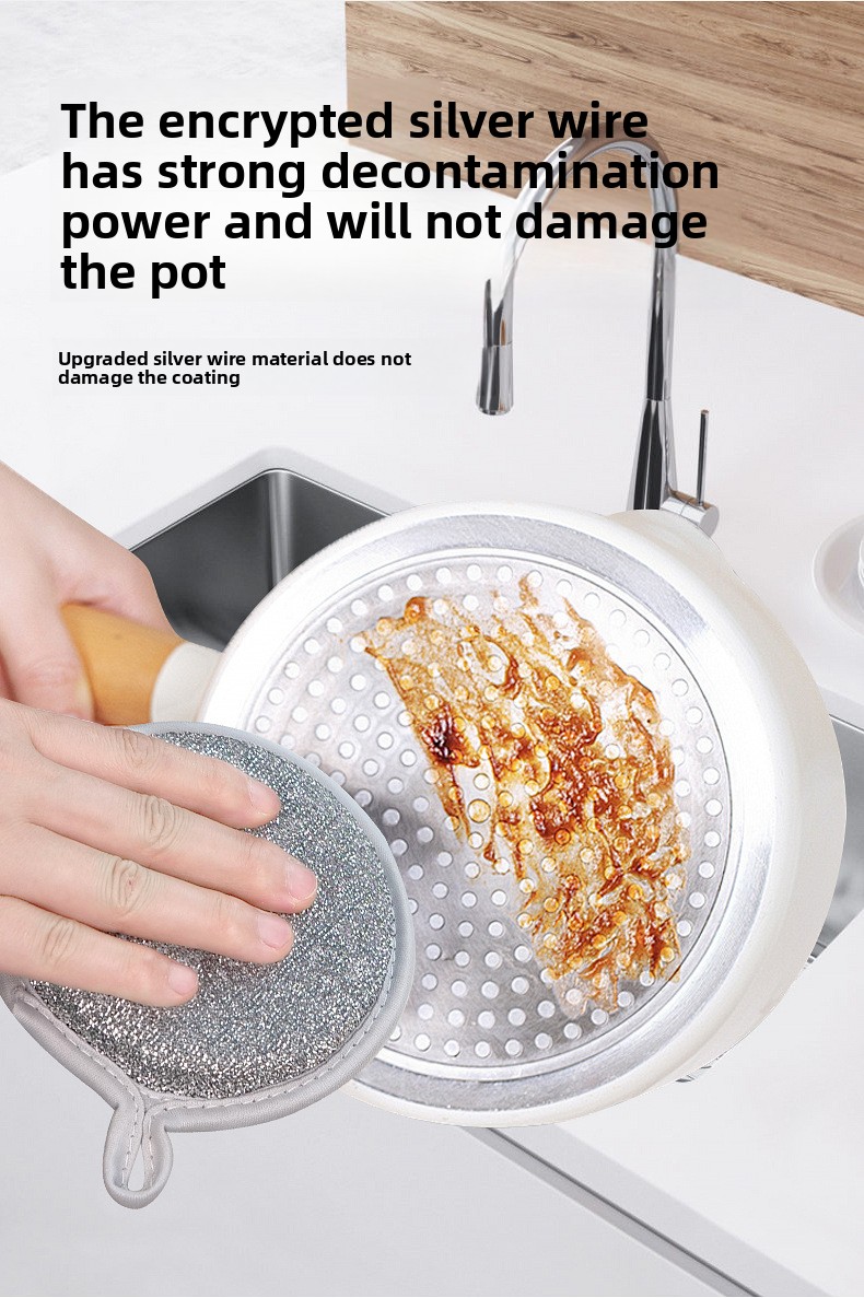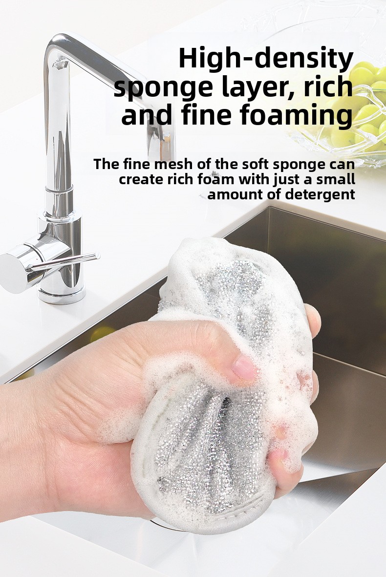 This double - sided silver - thread dishwashing sponge is a must - have for your kitchen.