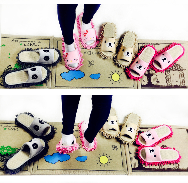Flower-patterned wooden floor lazy person mopping and mopping slippers