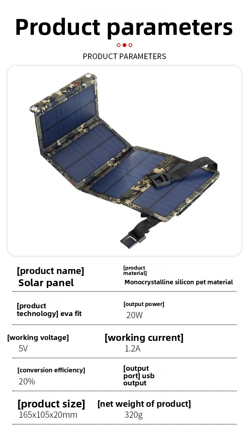 High Efficiency: Solar conversion rate of 18-19.5% with 20W max power output.