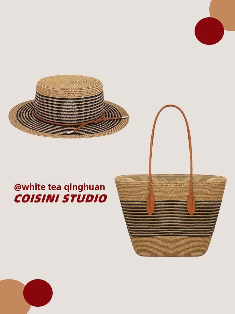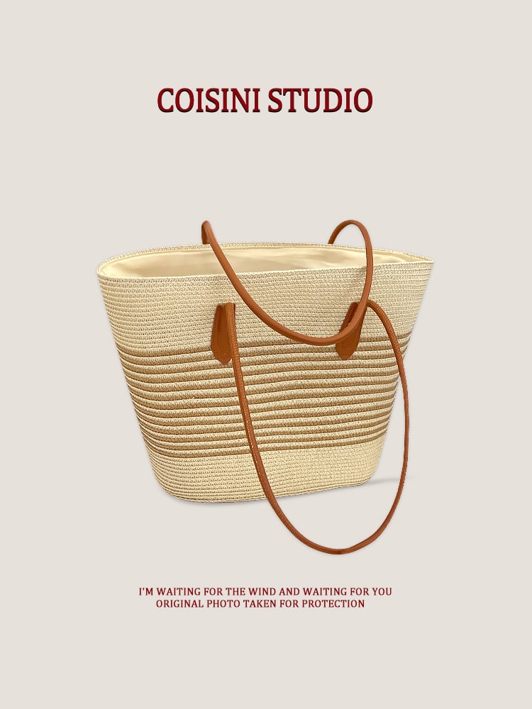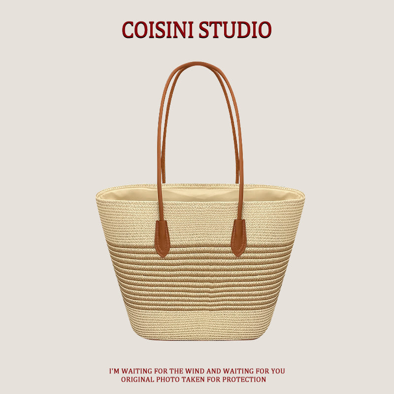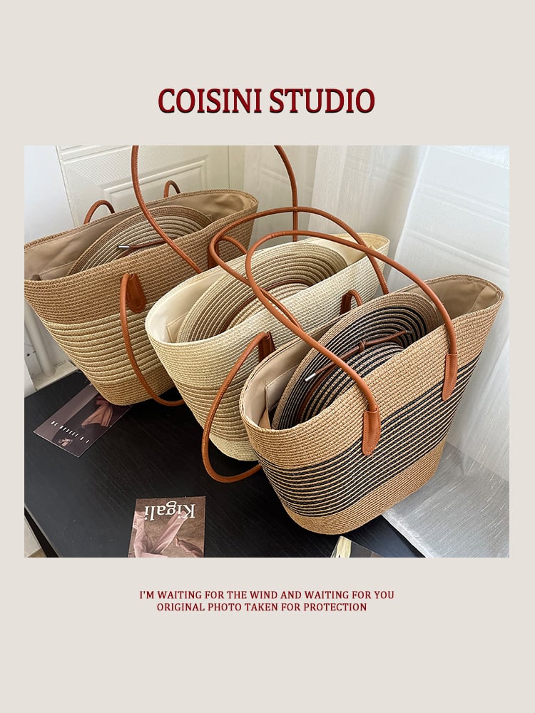 Handwoven Bag Large Capacity Straw Handbag Women's Sun Shade Straw Hat Casual Fashion Easiest for match Shoulder Bag
