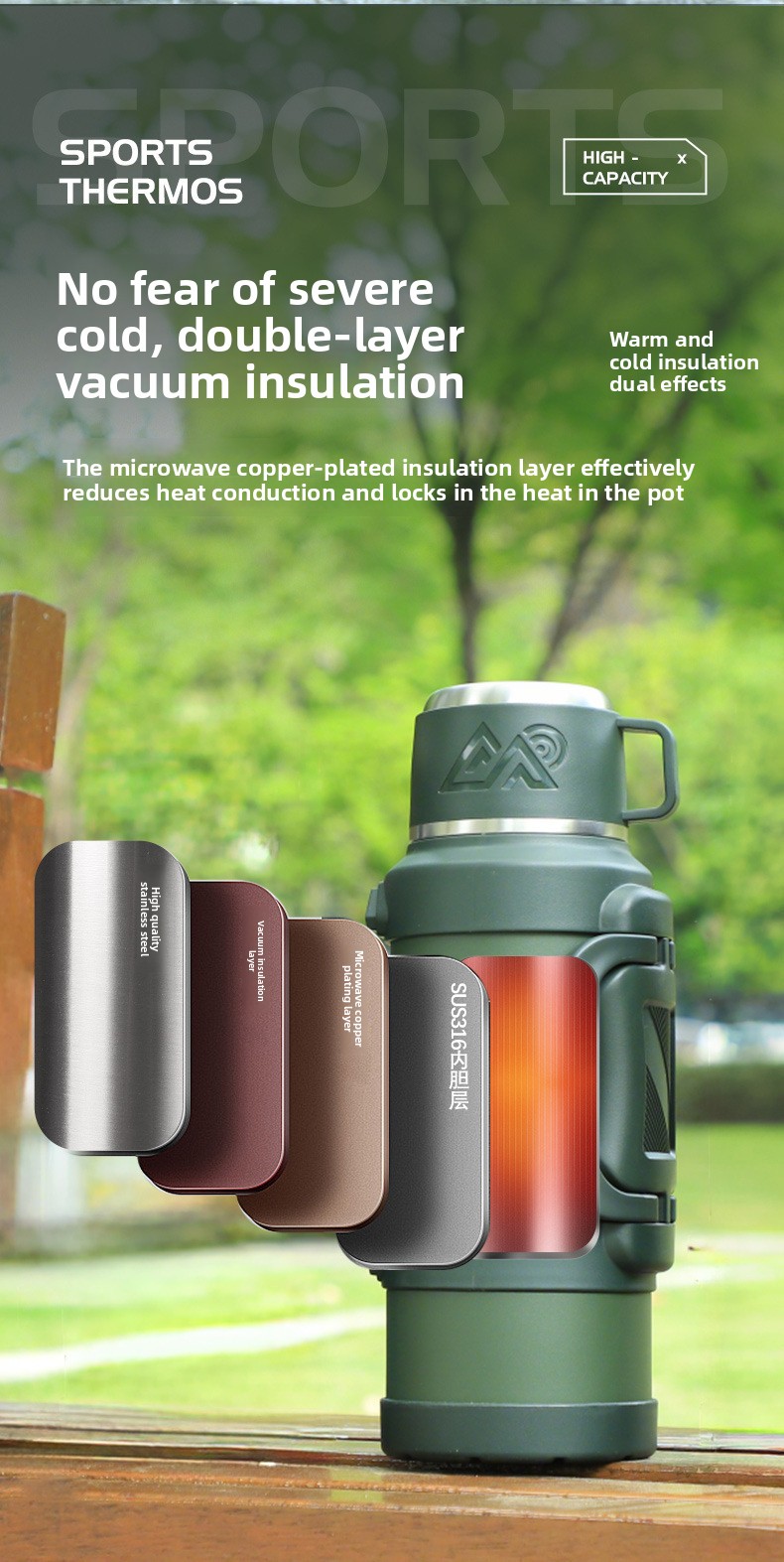 Vacuum Insulation: Advanced vacuum insulation technology keeps liquids hot or cold for 24-36 hours.