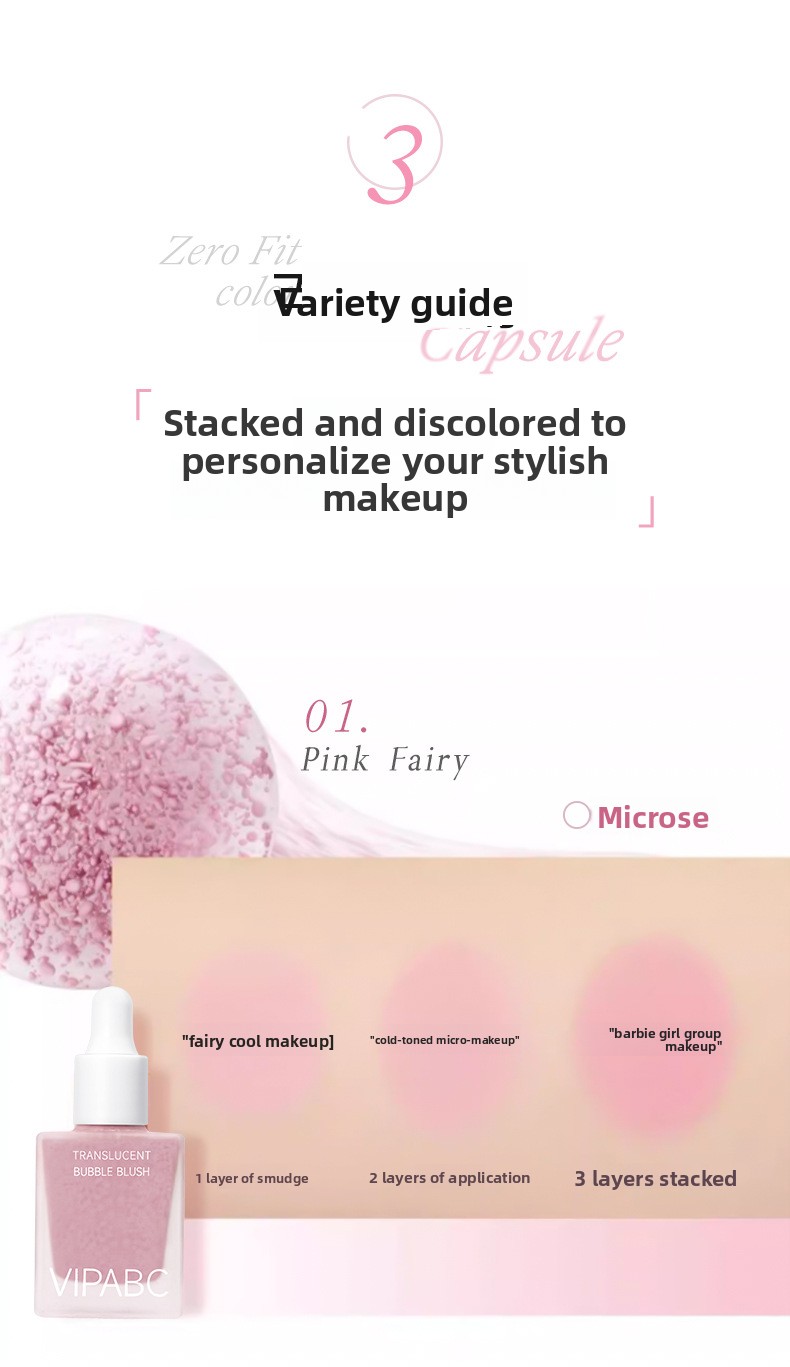 Bubble Essence Blush: Lightweight and airy texture for a natural flush.