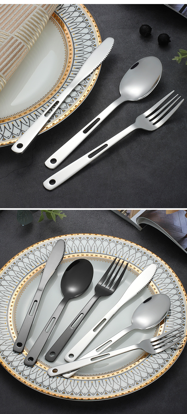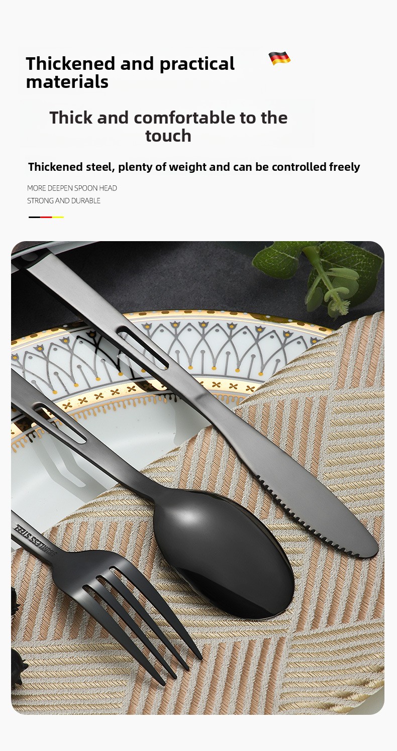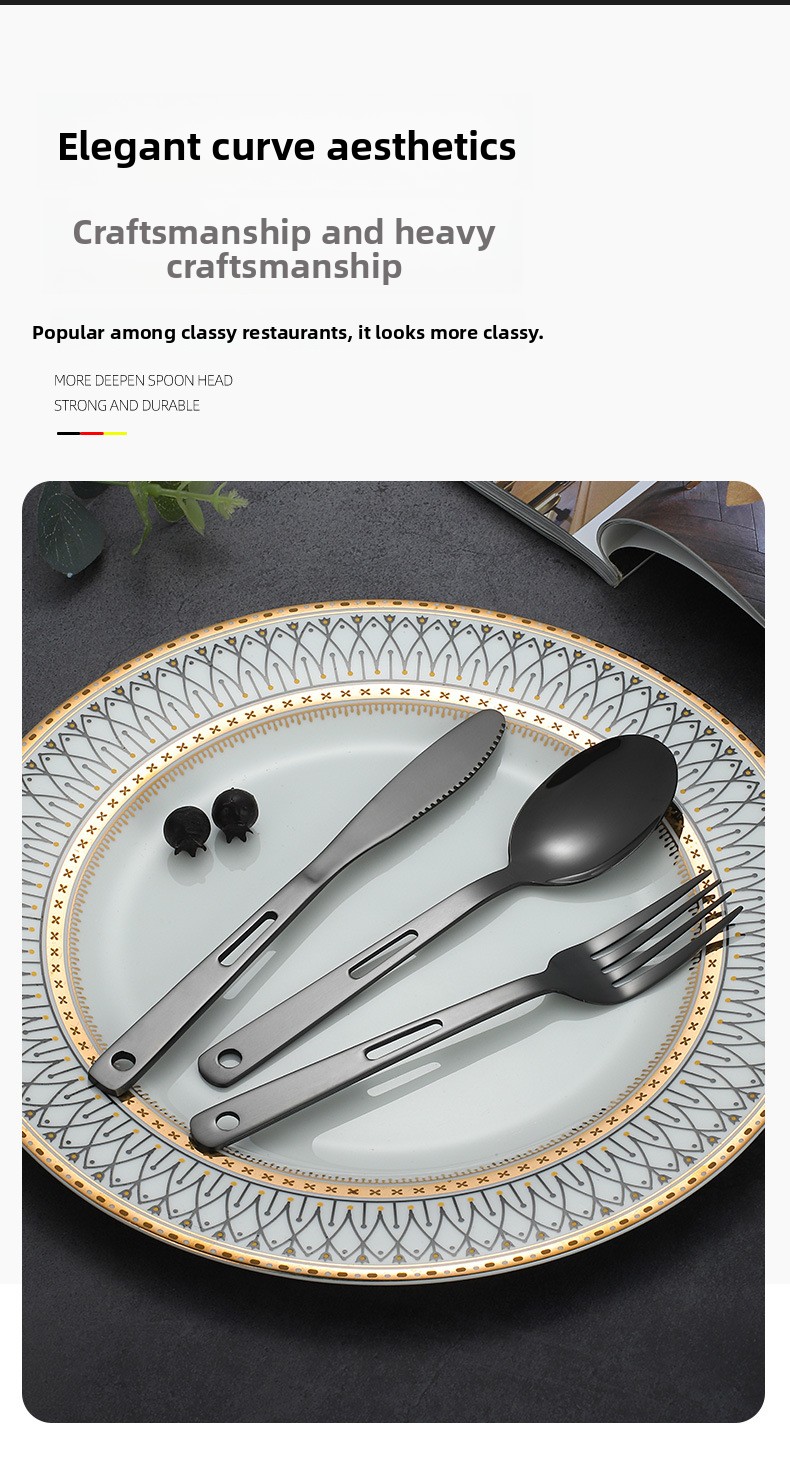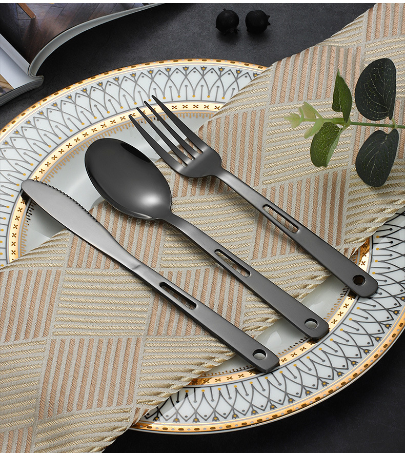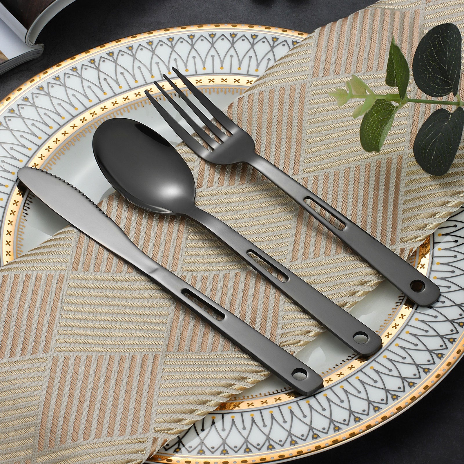Color Options: Silver 3-piece set, Black 3-piece set, Silver table knife, Silver spoon, Silver fork