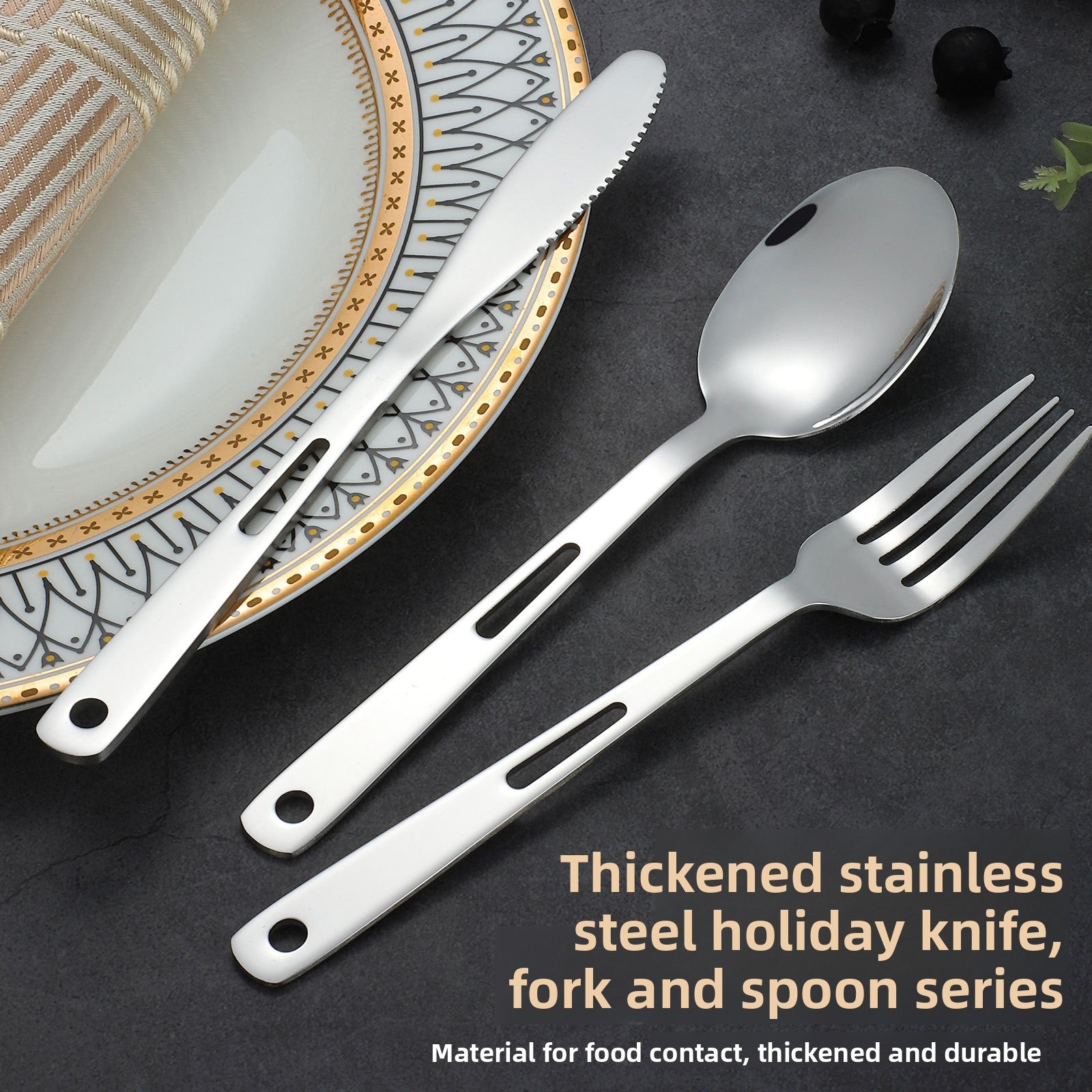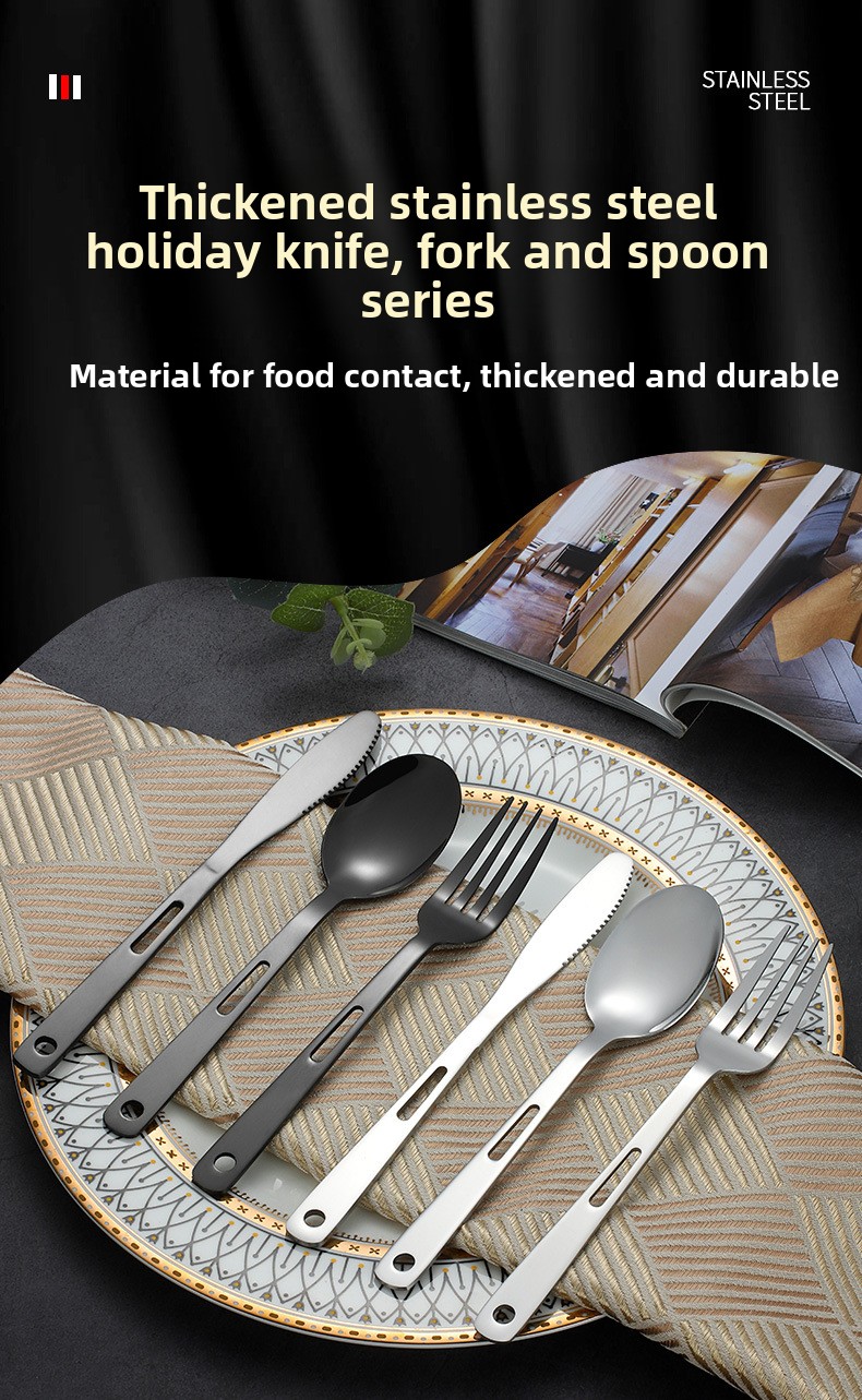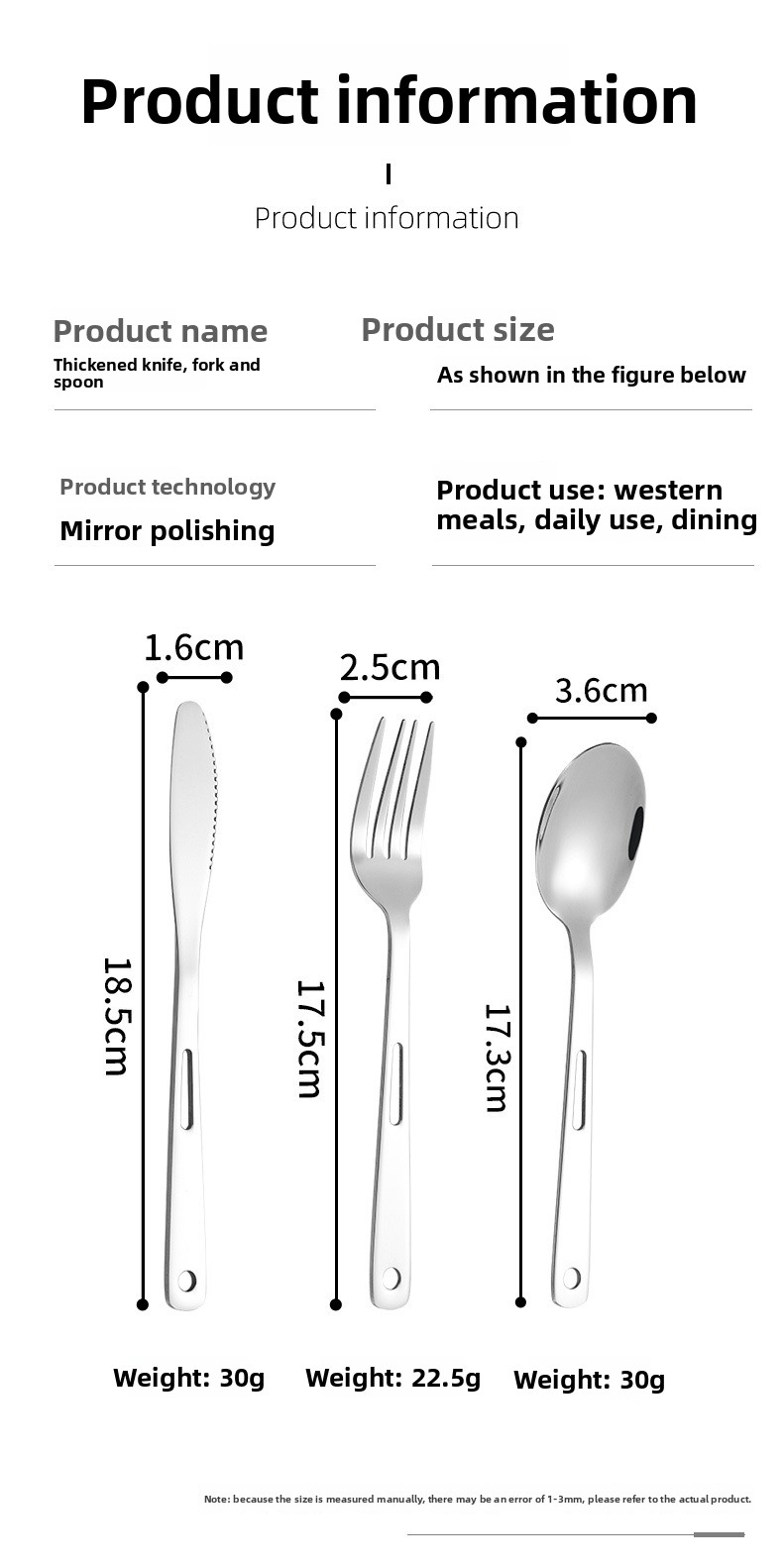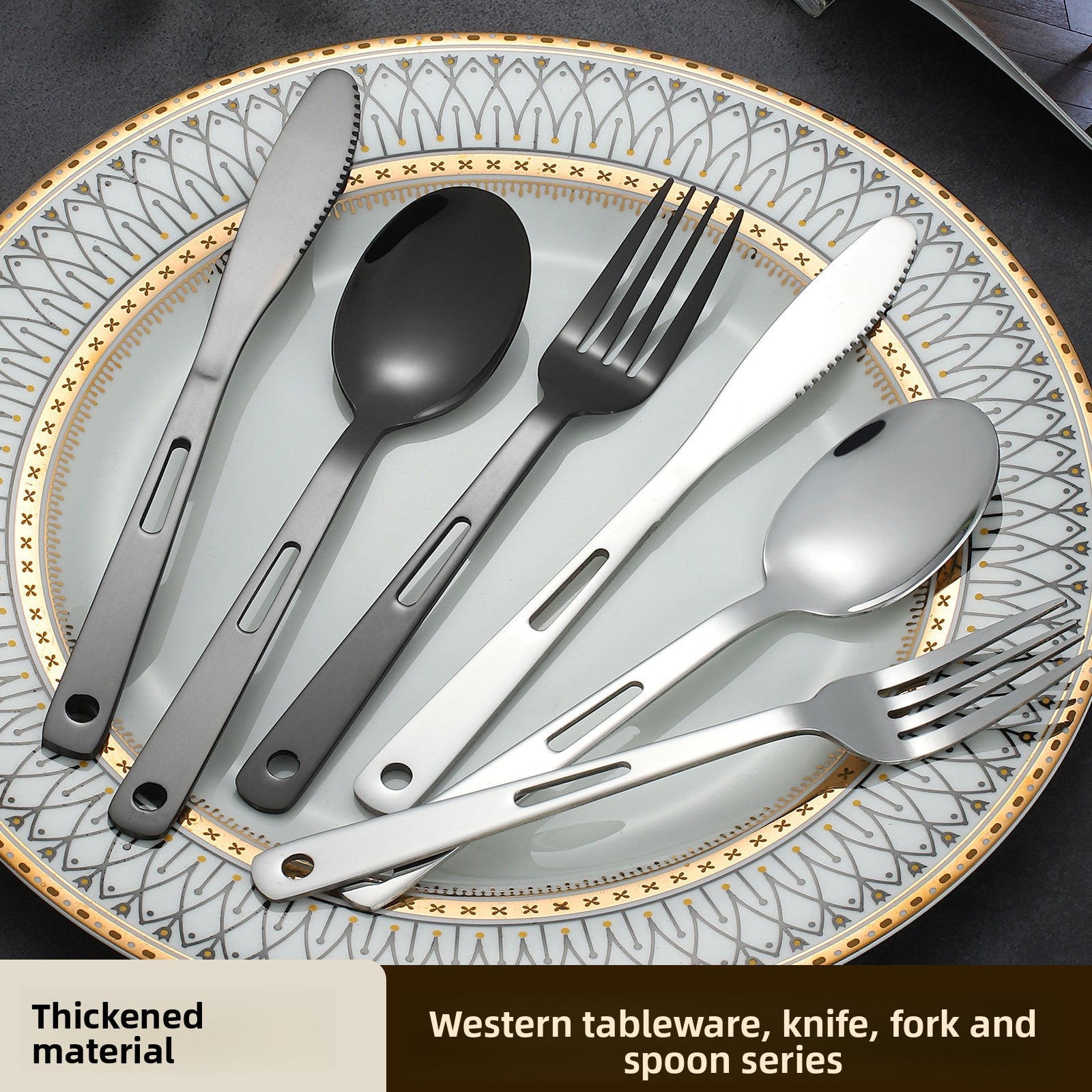 Color Options: Silver 3-piece set, Black 3-piece set, Silver table knife, Silver spoon, Silver fork