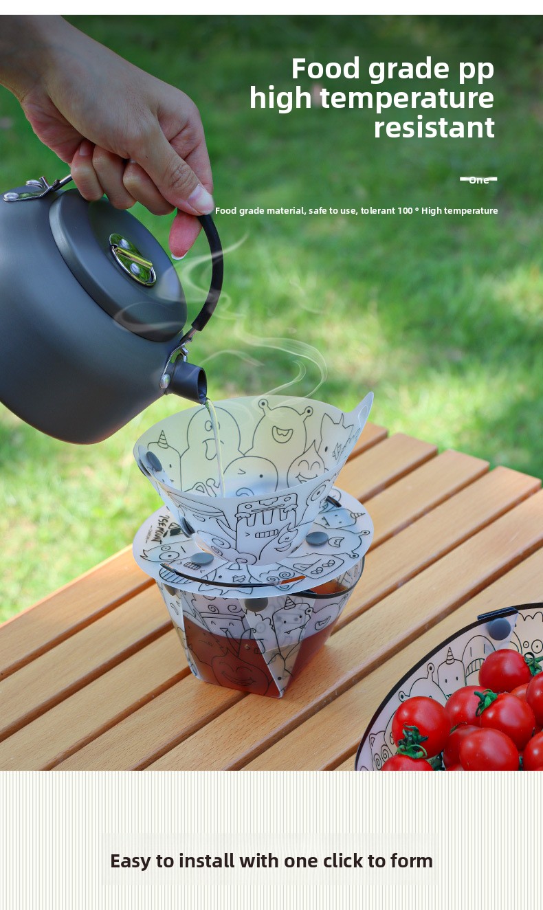 Set Includes: Folding bowl, folding cup, folding plate, folding coffee drip filter.