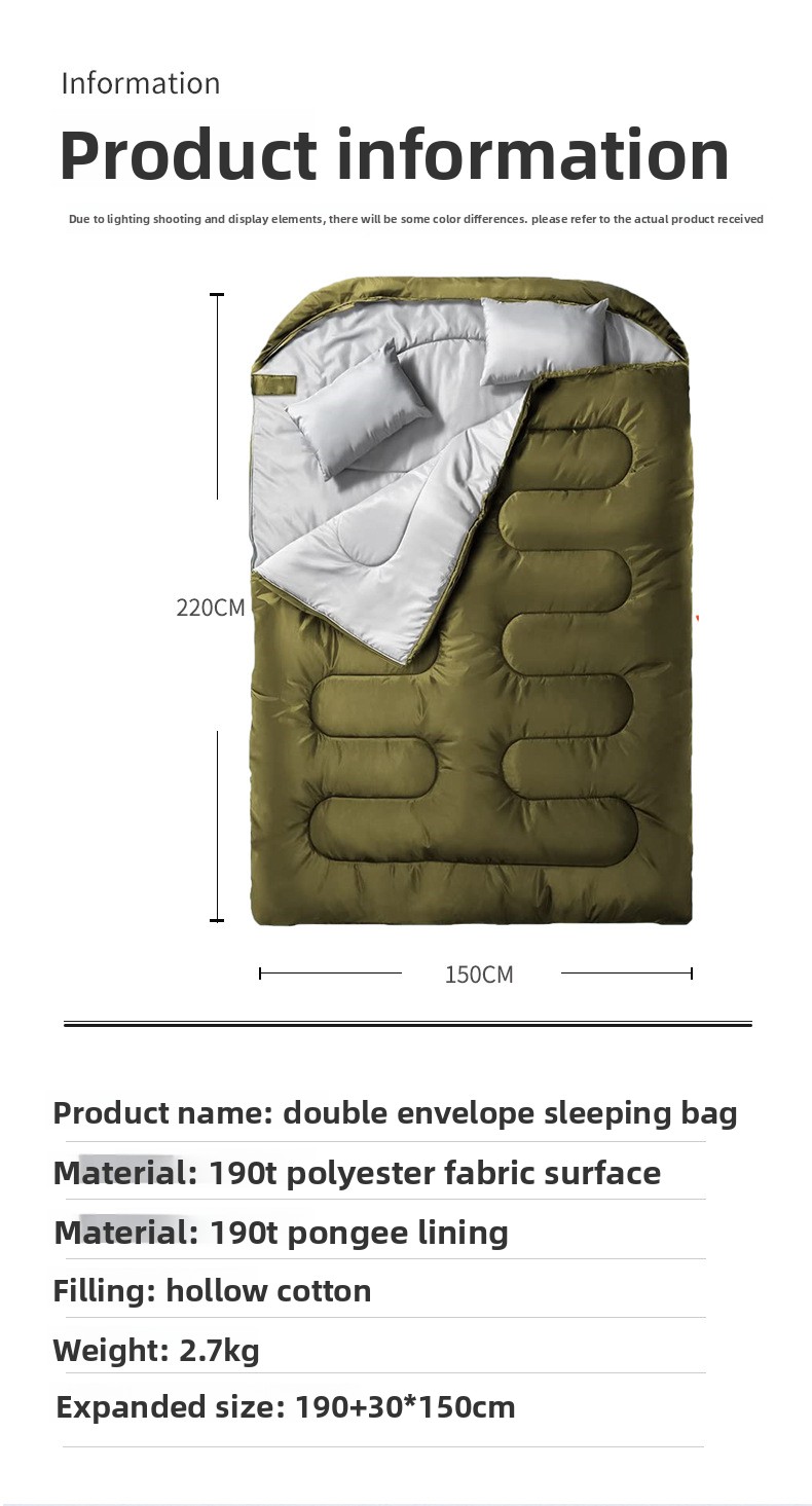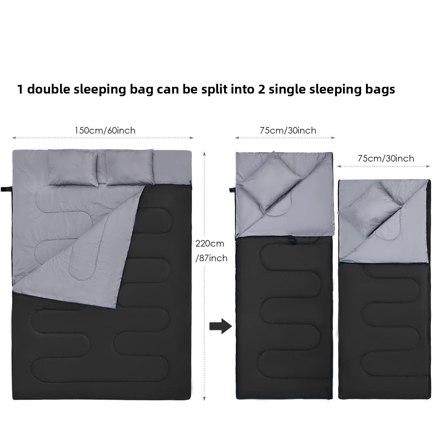 Detachable Design: Can be split into two separate sleeping bags for versatility.