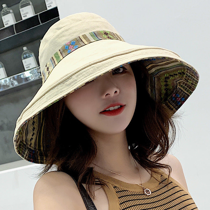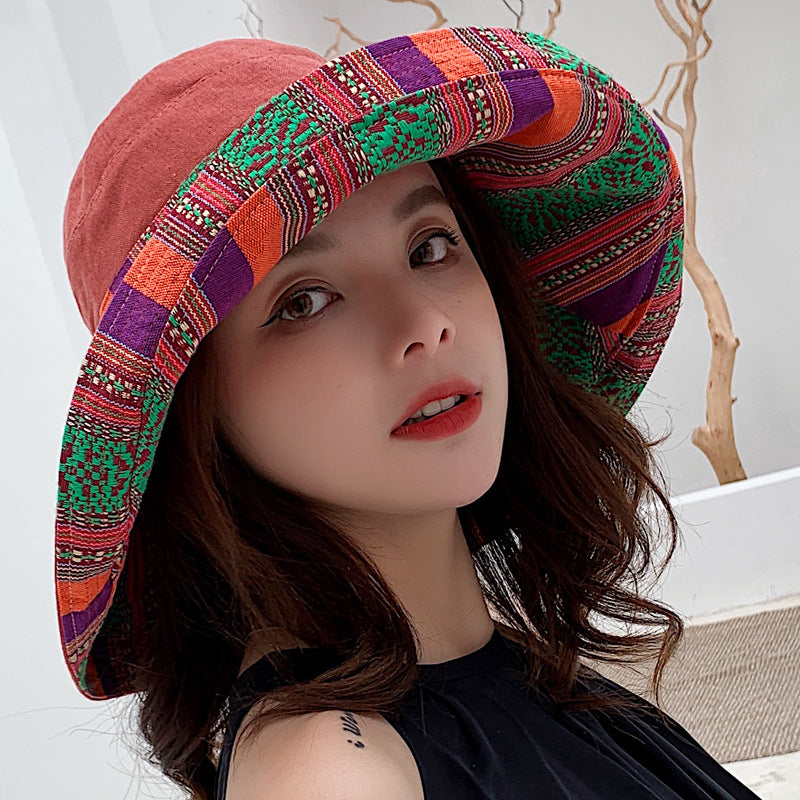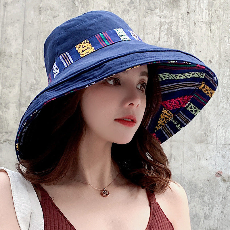 Summer ethnic style double-sided sun hat