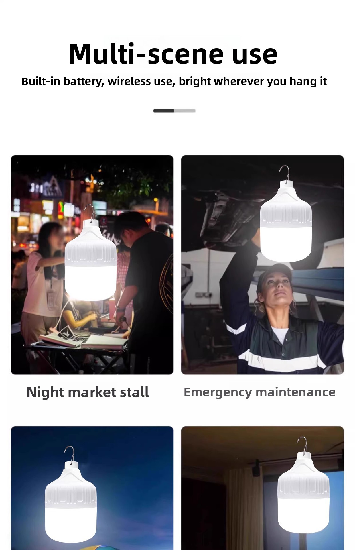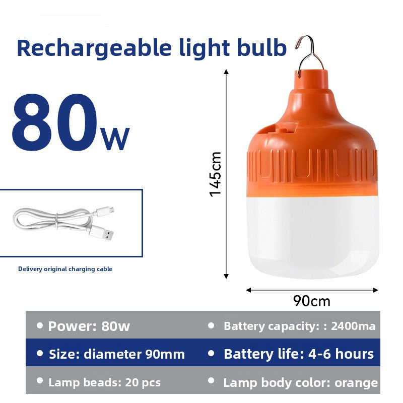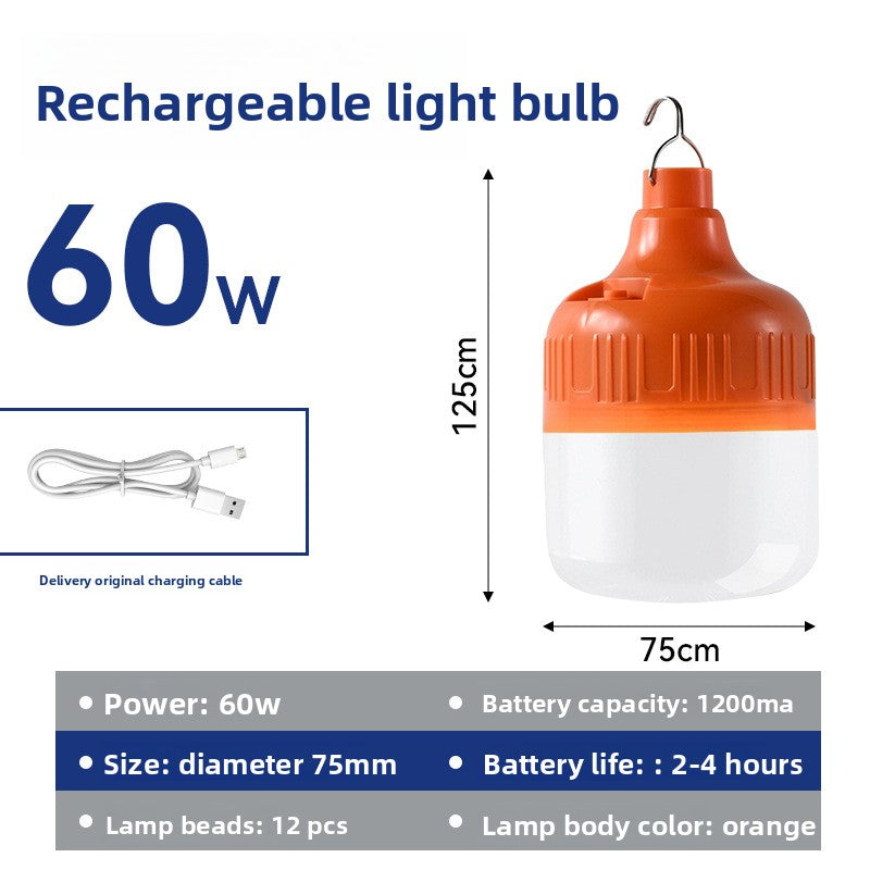 Portable Lighting: USB rechargeable LED bulb for outdoor and emergency use.